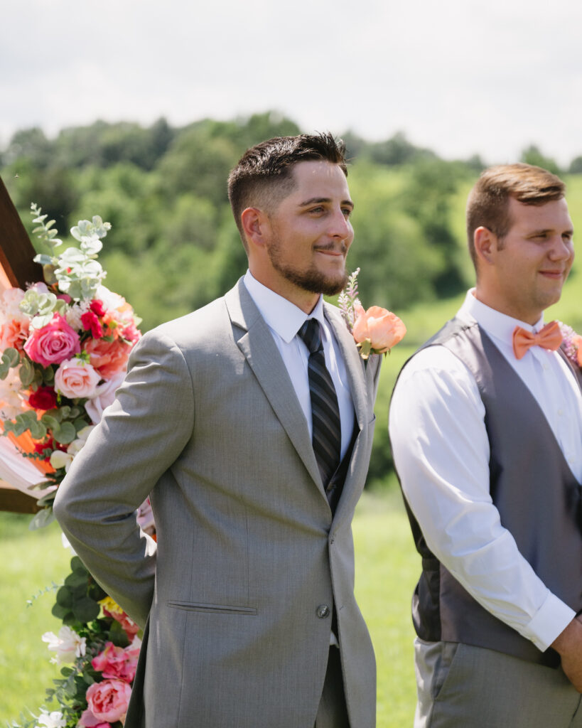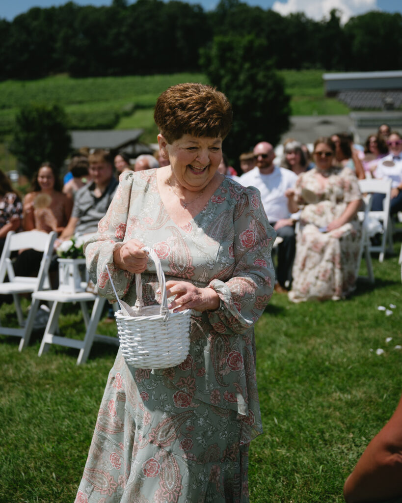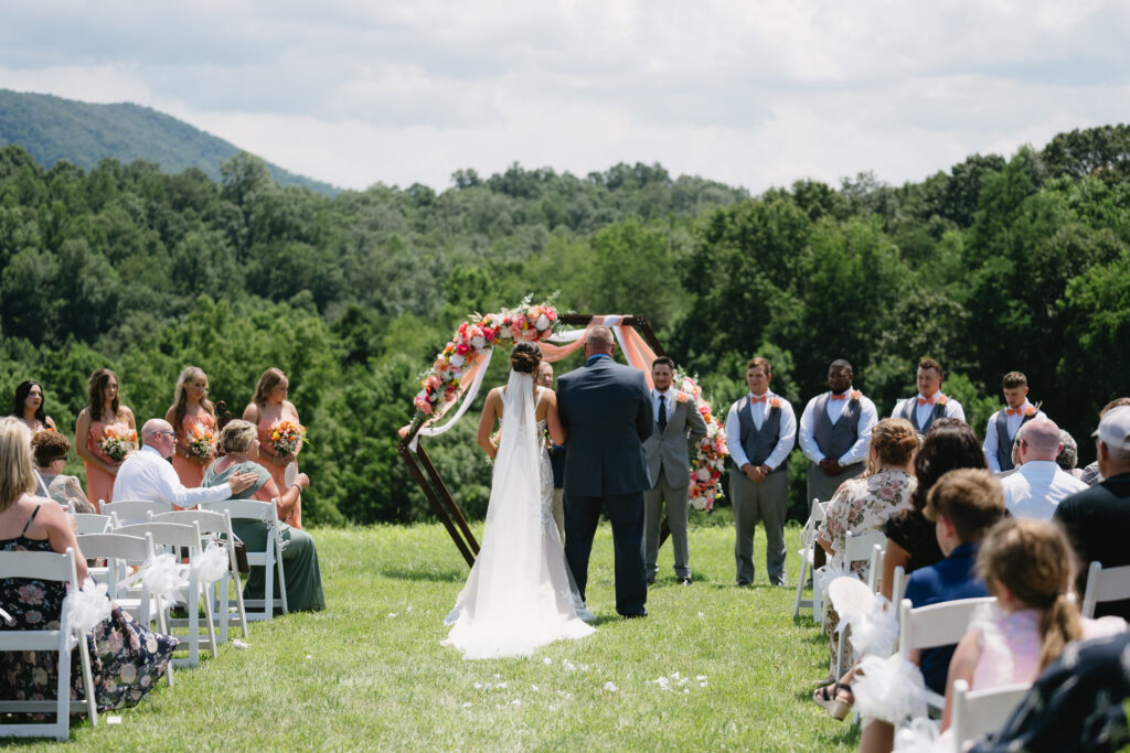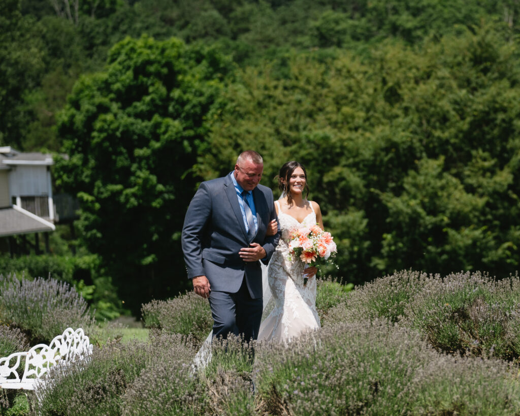 One of the most emotional moments of the day happened before the ceremony. Breanne shared a private first look with her dad at the top of the mountain overlooking the vineyards. As she walked toward him with the rolling Virginia hills stretching endlessly behind her, the moment was filled with overwhelming emotion. The views were breathtaking, but nothing compared to the love and pride shared between father and daughter.
